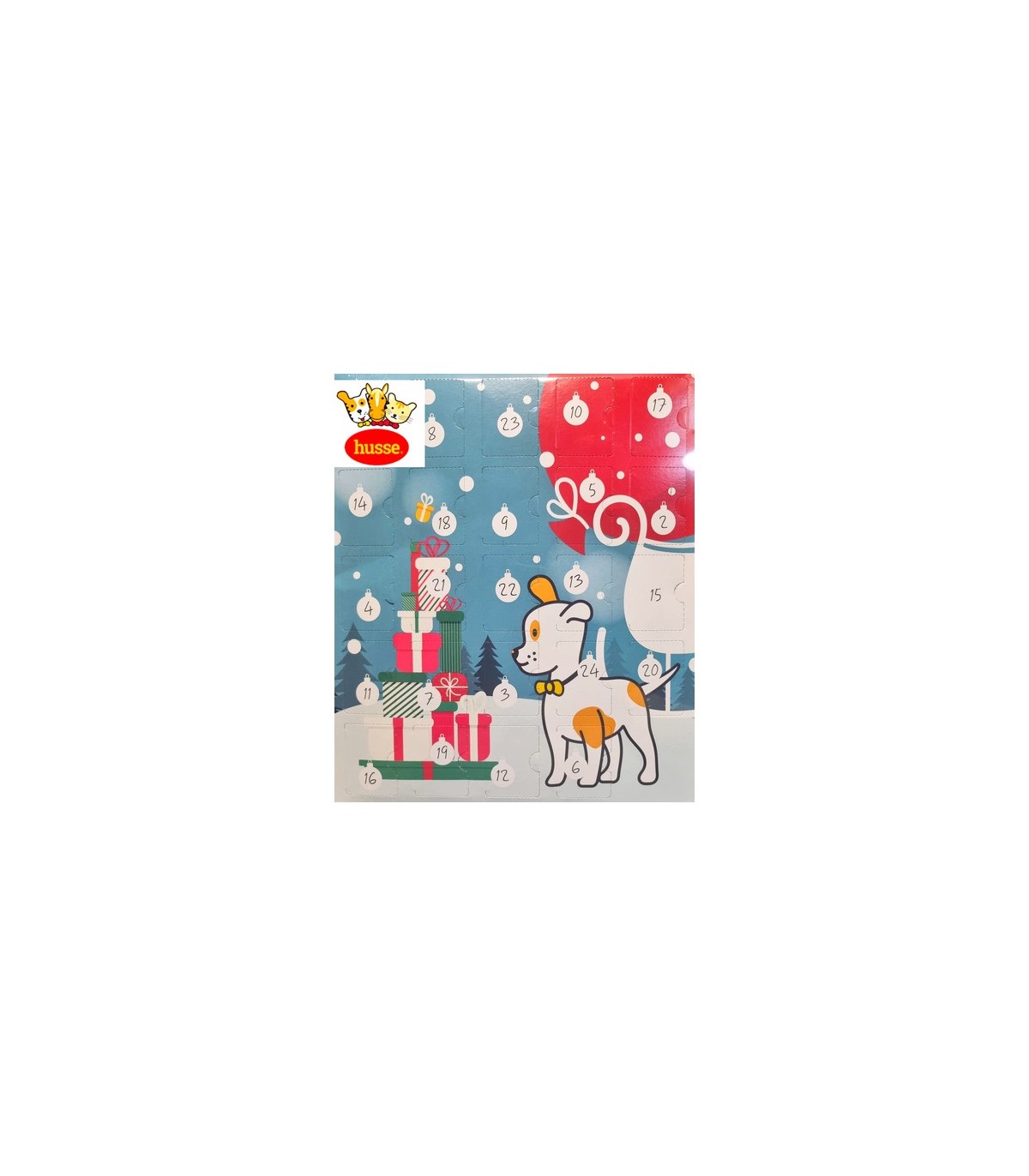 Offrez à votre chien la magie de Noël avec le calendrier de l'avant Husse : 24 friandises sans gluten à l’agneau, saines et savoureuses chaque jour.