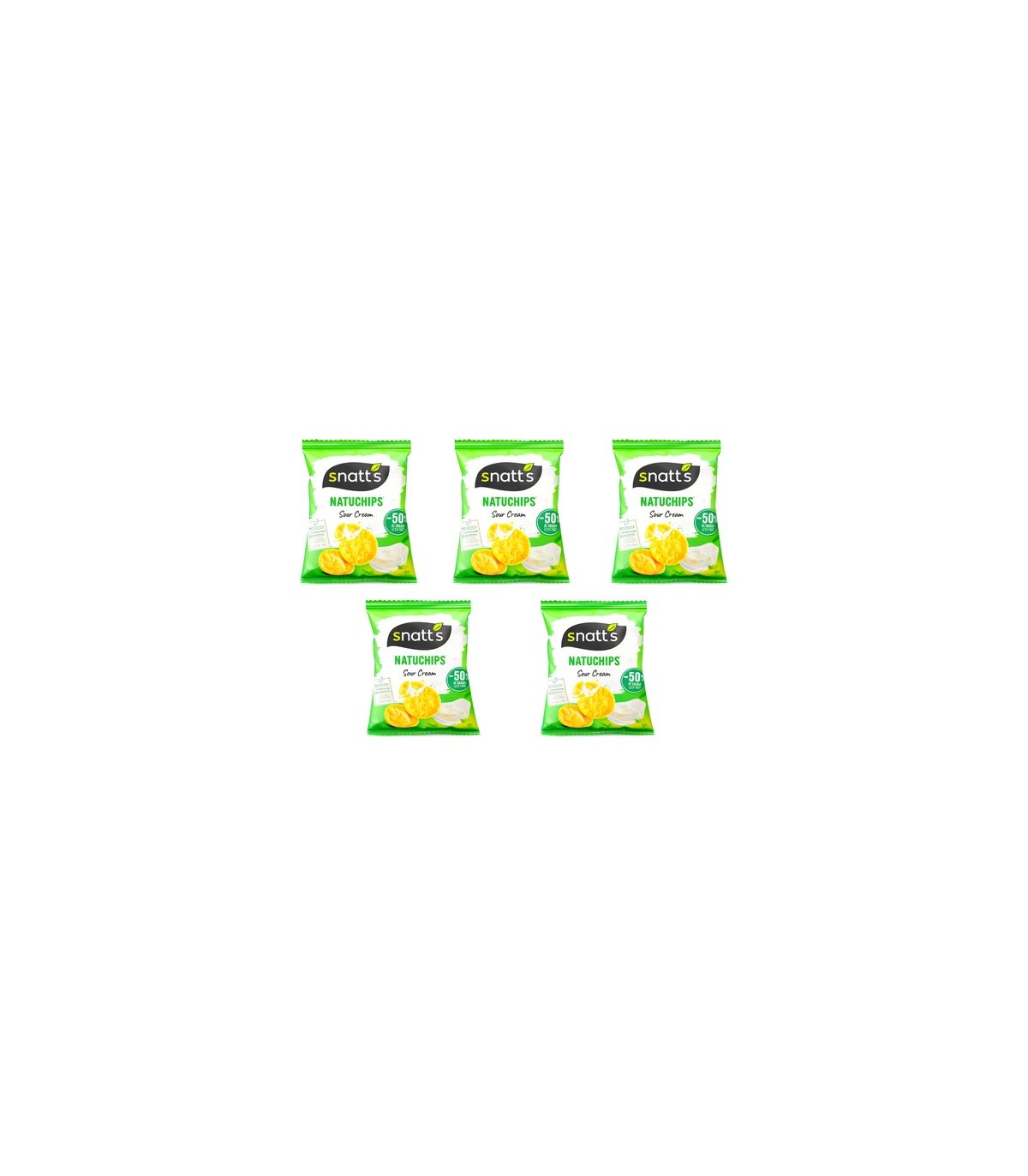 Snatt’s Natuchips crème acidulée & persil 5×23 g, chips croustillantes sans gluten aux ingrédients naturels, plus légères, idéales pour l’apéritif.